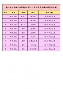 114.11.19 彰化縣田中鎮公所114年度 第11屆鎮長盃閱讀心得寫作比賽